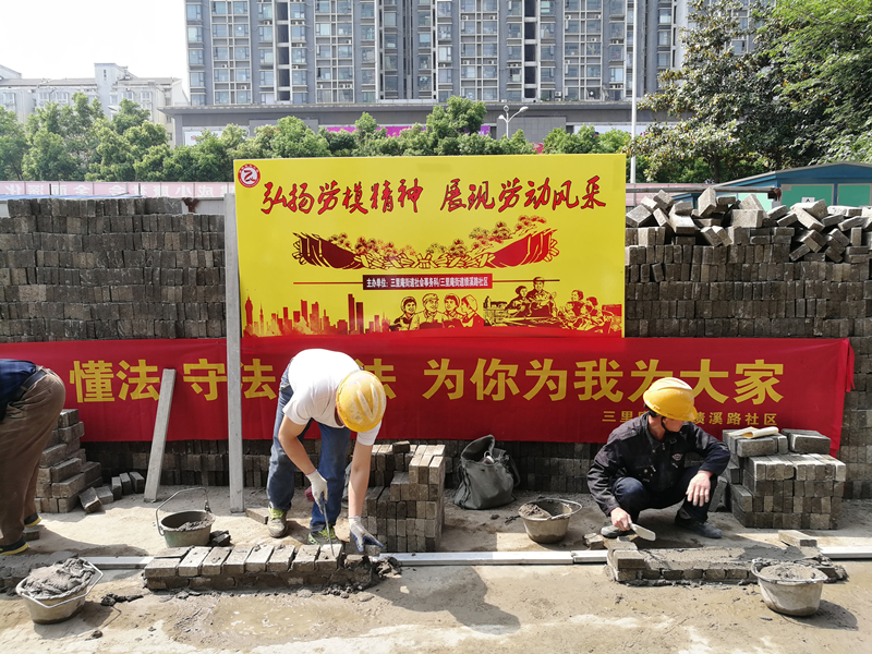 随后,活动方在施工现场根据条件挑选4名瓦工进行限时限量砌墙技能比赛,本次活动限时10分钟,每人砌砖数量100块,瓦工班组长刘祝华担任裁判,经过近10分钟的激烈角逐,4人均在限定时间内完成比赛,裁判根据4人砌筑墙体的观感、垂直度、灰缝等方面进行综合评比,定出第一、第二、第三名及优秀奖。随后,社区工作人员为各获奖选手颁发获奖证书、奖品及奖金。