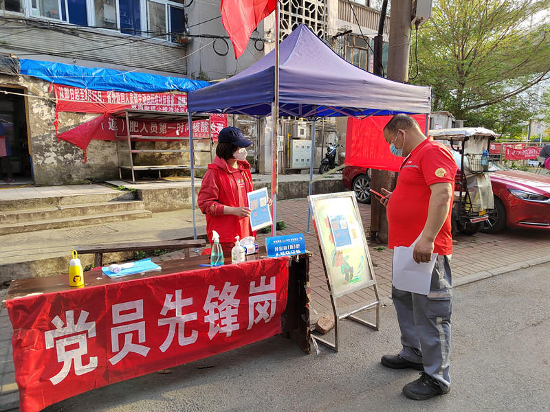 绿都花园是个比较大的小区,有25栋居民楼,一所幼儿园。小区入口处商业街有饭店、超市、快递点、诊所,进出小区的人流量大,人员结构比较复杂。在执勤过程中,我们认真执行防疫政策,做好进入小区人员的扫码工作和来(返)肥人员的登记报备工作,遇到不能熟练使用智能手机的老年人,就手把手的教他们扫码。