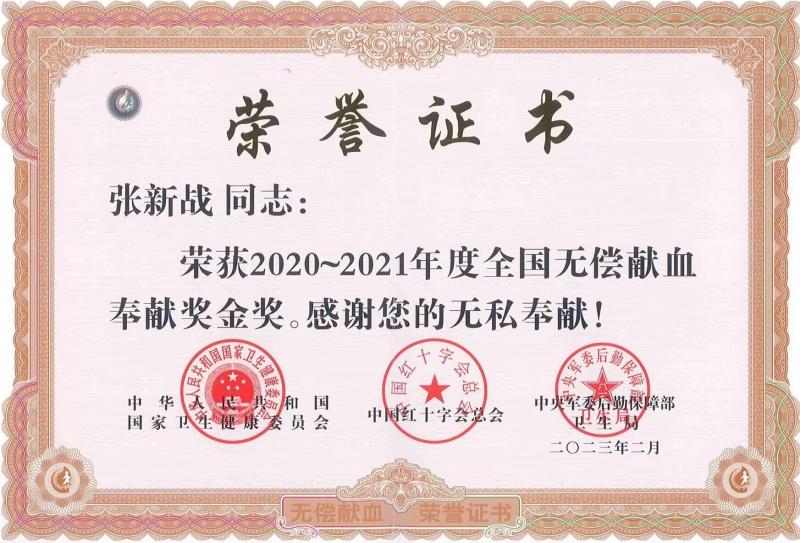 近日,经地方推荐、部门审核、社会公示,国家卫生健康委、中国红十字会总会、中央军委后勤保障部卫生局联合发布2020--2021年度全国无偿献血表彰决定,物探队地环所职工张新战、方明分别被授予“无偿献血奉献奖金奖”和“无偿献血奉献奖铜奖”。