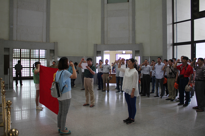 20日下午,全体党员来到了此次红色之旅的首站周恩来纪念馆。在庄严肃穆的纪念馆大堂中,全体党员面对鲜红的党旗和周总理塑像,郑重的举起右拳,重温了入党誓词,句句铿锵有力的誓词表达了大家对党的忠诚及为党奉献的坚定决心。