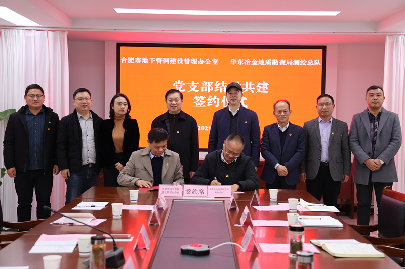 为提高基层党建工作水平,创新基层党建工作载体,强化支部间工作交流,12月8日,测绘总队与合肥市地下管网建设管理办公室在集团公司会议室举行党支部结对共建签约仪式。集团公司党委书记、董事长金其军,合肥市城乡建设局直属机关党委副书记李永,合肥市地下管网建设管理办公室党支部书记、主任李彬,副主任徐琼,测绘总队队长陈庆宏、党支部书记李广强及有关部门负责同志出席仪式。
