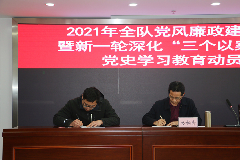 会上,队党委书记方柏青与各实体单位主要负责人签订了2021年度党风廉政建设责任书。