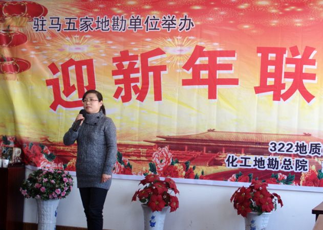 2013年12月27日下午, 由驻马的五家地勘单位工会联合主办的迎新年联欢会,在322地质队会议室举行。局工会主席左志玲,局机关工会主席邓慧玲,局团工委书记彭桂,地矿局工会领导和五家地勘单位的领导应邀参加了联欢会。