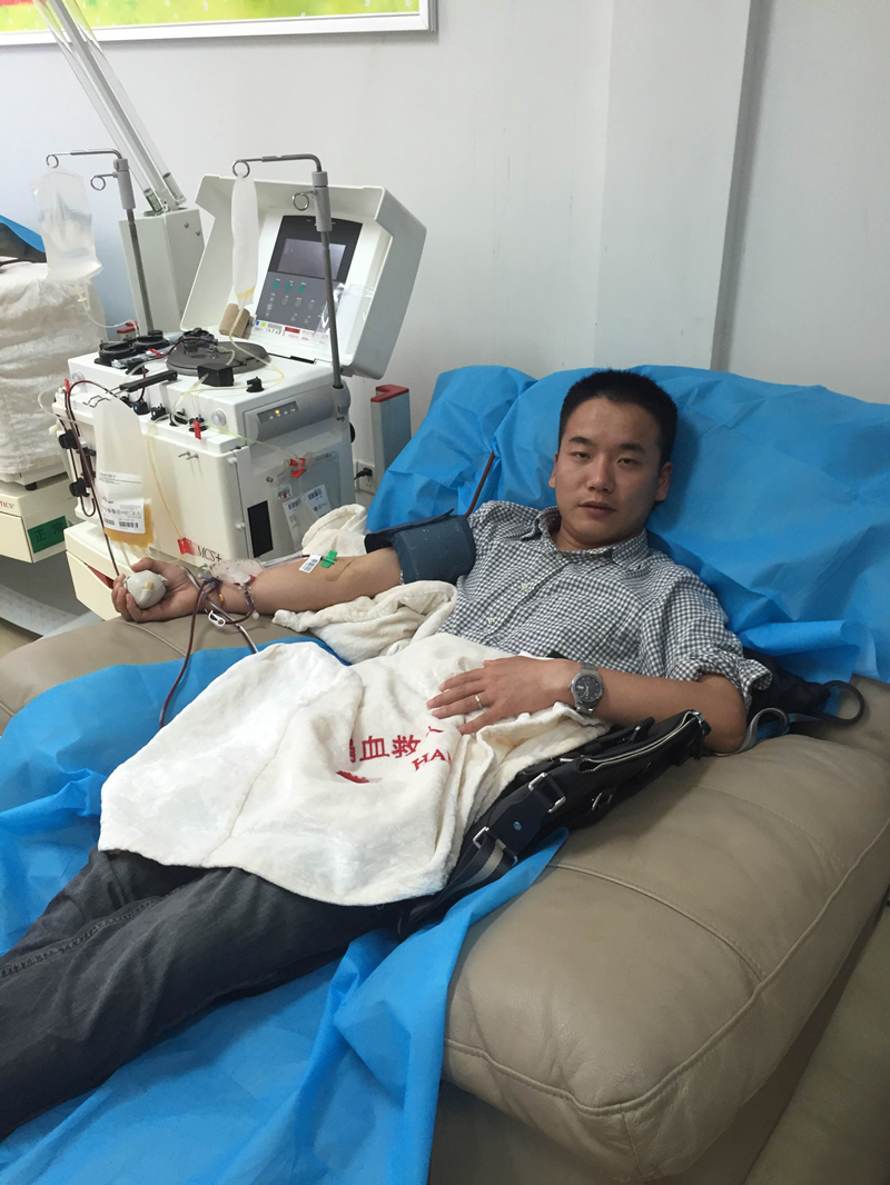 5月13日下午,物探队勘基六公司“85后”员工方明来到芜湖市中心血站,走进了献血室。方明说,5月13日在微信关注上看到呼吁爱心人士伸出援手为危在旦夕的雪雁捐献血小板的信息后,方明随即就赶到血站捐献。对于有10多年献血经历的方明来说,献血小板还是第一次?!叭嗣靥?,只要我符合条件,能够救这个病人,我就义不容辞?!?/span>