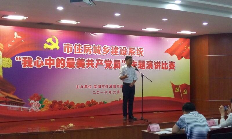 6月25日下午,芜湖市住建委党委举办的“我心中的最美共产党员”演讲比赛决赛在华衍水务六楼会议室隆重举行,该市住建委党委领导班子成员、委属单位各主要负责人、驻芜单位党组织负责人、党办主任(组织科长)、各单位代表等100余人到会观看比赛。