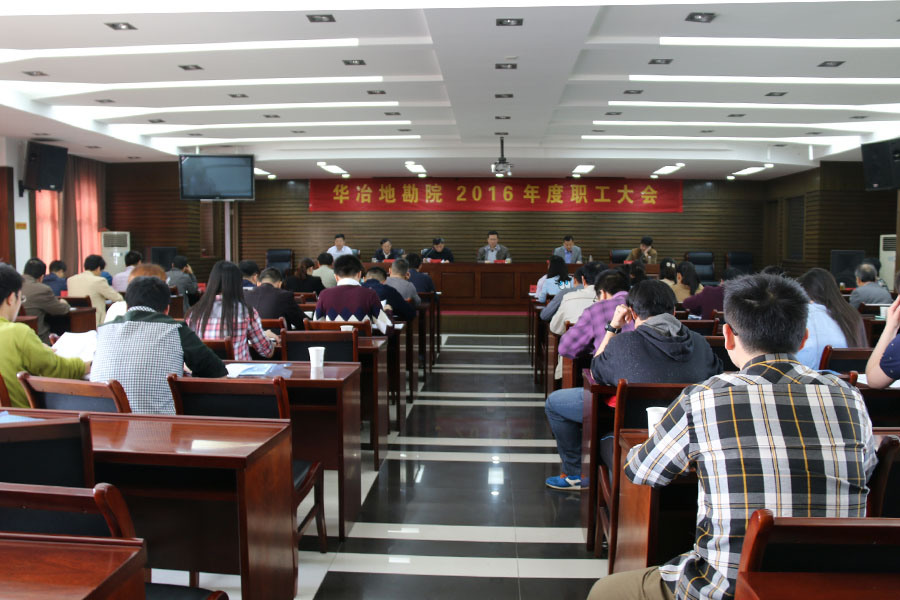 院长牛坤在会上作了题为《调整产业结构,聚力转型升级,努力实现 “十三五”发展良好开局》的工作报告。报告总结了地勘院过去一年的工作情况,分析了地勘单位面临的新形势和新任务,提出了“十三五”期间全院的发展目标及主要任务。安排部署了2016年重点工作。