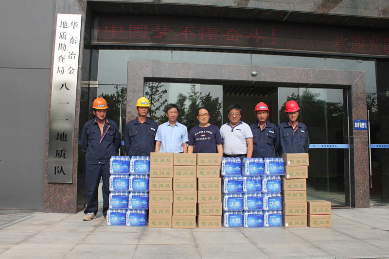 刘副主席代表市总工会对八一一队在烈日酷暑下坚持辛勤工作的野外一线地质工作者表示亲切的问候,并送上了绿豆、白糖、矿泉水等消夏解暑用品,传达了滁州市总工会对该队职工的关爱。刘副主席强调,八一一队工会要结合夏季野外作业特点,主动做好一线职工的劳动?;ず头朗罱滴鹿ぷ?,加强职工的安全意识和宣传教育,确保平安度夏。