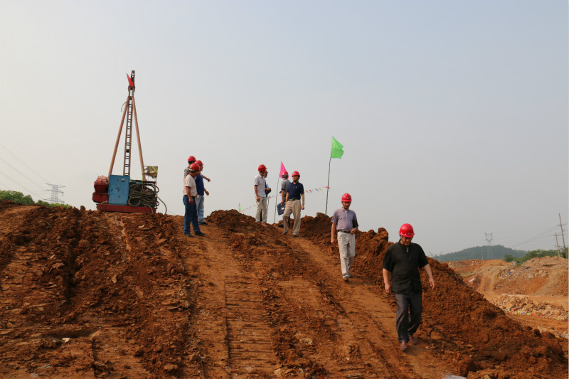 马鞍山大金山滑坡地质灾害治理工程位于马鞍山市银塘镇西北角,江东大道延长段处。该段曾发生滑坡灾害,滑坡面积约为6000m2。施工期间,队领导和队安全部门多次莅临指导。在中秋节当天由于受台风“鲇鱼”影响,马鞍山气象台预报将有暴雨,三公司经理汪忠斌同志及副经理刘可愚亲自来到施工现场,察看滑坡体不稳定迹象及安全?;ご胧?,确保发生危险早发现、早转移,确保现场人员生命财产安全。由于本次施工桩的设计位置在山坡上,施工平台搭设难度高、风险大、进出道路不方便等原因,造成进度不易保证,项目部根据现场情况,克服困难,目前已完成钻孔灌注桩19根及部分排水沟工程。