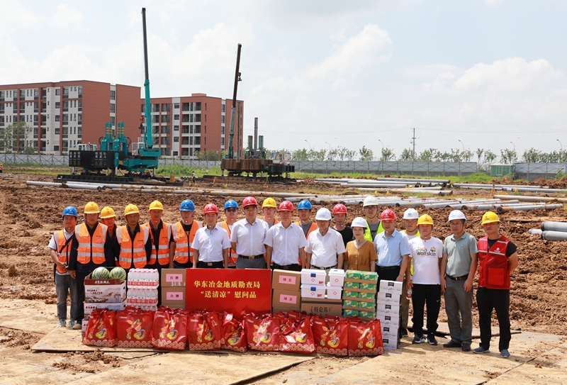 局领导深入811队、812队、815队、屯调所、地勘院、测绘总队、勘基总公司等单位项目一线,为现场施工人员送上防暑降温物品,并代表局党委向他们的辛勤付出表示感谢。局领导与施工人员亲切交谈,询问了解工作生活情况,并叮嘱大家务必注意身体健康和施工安全。局领导要求各项目部切实做好防暑降温保障工作,合理安排人员作息时间,严格做好疫情防控工作,确保职工生命安全和身体健康。