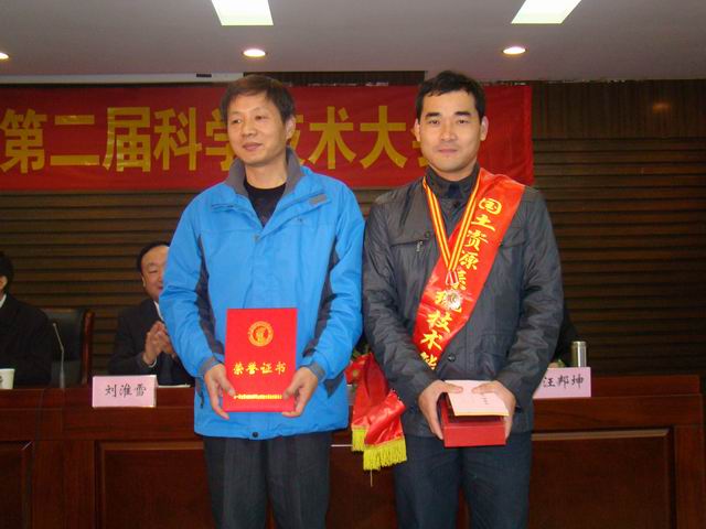 会上,于广陵副局长宣读了局《关于表彰“十一五”期间优秀科技创新成果的决定》。余焰炉副秘书长等省领导以及局领导分别为获奖代表颁奖,期间,汪邦坤副局长还为全国钻探技能大赛铜牌奖和优秀奖获得者颁奖?;窠贝?12队总工蒋其胜和优秀青年科技工作者代表局地勘院方涛分别上台作了发言。