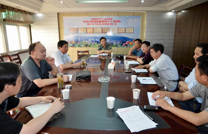 随后,韩学范副局长一行与队领导班子进行座谈,谭洪江队长介绍了1~4月份生产经营情况和重点工作,并对上半年的经营目标进行了预测。1~4月该队完成收入约3000万元,根据目前在手工程及市场潜力,上半年预计可完成收入6000万元,实现时间过半、任务过半(今年该队年收入目标1.2亿元) 。该队班子成员分别就分管工作进行了汇报,其中蒋其胜总工的发言依旧振奋人心,今年该队地质找矿形势喜人,已完成的铜陵老屋村铜矿、南陵桂山铜铅锌矿、无为章村铁矿普查项目都已获得省厅续项,姚家岭矿床即将进入详查阶段,设计钻探工作量4万米。此外,该队重点工作办公大楼及玻钢公司厂房移址正在进行,玻钢公司出口管道和雷达天线罩项目为公司经营发展增添动力。