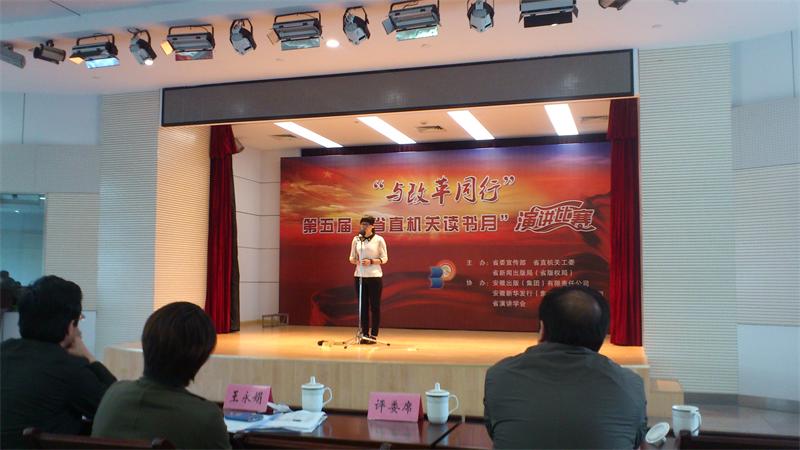4月24日上午,在省新闻出版局三楼礼堂,局团工委带队我局选手周丹参加了由省委宣传部、省直机关工委和省新闻出版局主办的以“与改革同行”为主题的第五届“省直机关读书月”演讲比赛。