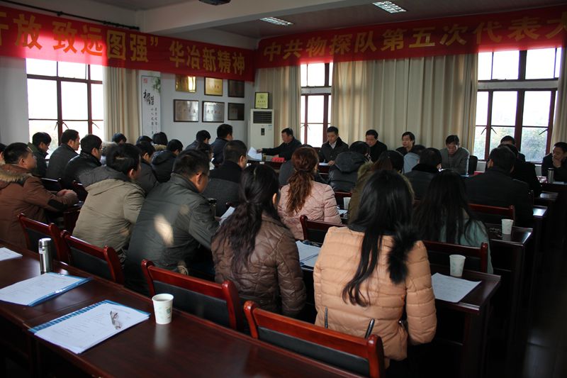 12月12日,中共物探队第五次代表大会在四楼会议室隆重举行。局党委书记章敬云,芜湖市住建委党委委员、副主任许尔斌到会并作重要讲话。全队38名党员代表出席会议。