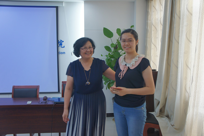 局工会主任、关工委成员左志玲(左)为考上本科院校的职工子女颁发奖学金