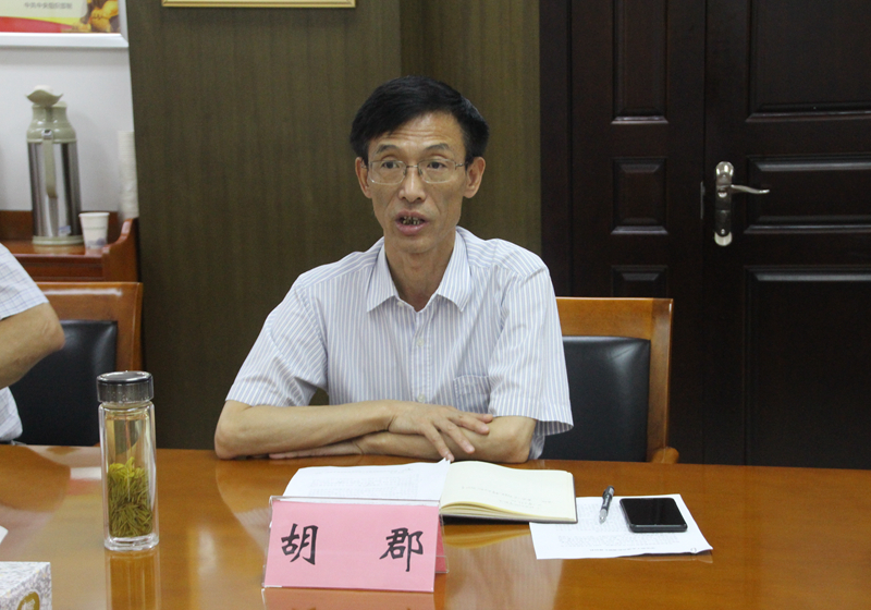 会上,胡郡副局长对胡东辉副主席一行的到来表示热烈欢迎,并介绍了我局基本概况、历史沿革、找矿成果、转型发展成效、职工关切,以及地勘单位改革发展等情况。
