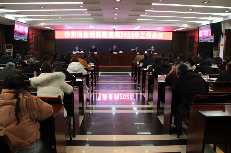 1月26日,华东冶金地质勘查局2022年工作会议在合肥举行?;嵋橐韵敖叫率贝泄厣缁嶂饕逅枷胛傅?,深入学习贯彻党的十九大和十九届历次全会精神,全面贯彻落实中央经济工作会议、省第十一次党代会和省委经济工作会议精神,总结2021年全局工作,分析面临的形势和任务,部署2022年重点工作,动员全局广大干部职工忠诚尽职、奋发向上,坚定不移推进华冶地勘事业高质量发展。局领导袁兆杰、胡郡、王彪、朱昆扬、谢礼国在主席台就座,局属单位班子成员、局机关副处级以上干部参加会议?;嵋榉直鹩删值澄?、副局长王彪和局党委委员、副局长朱昆扬主持。