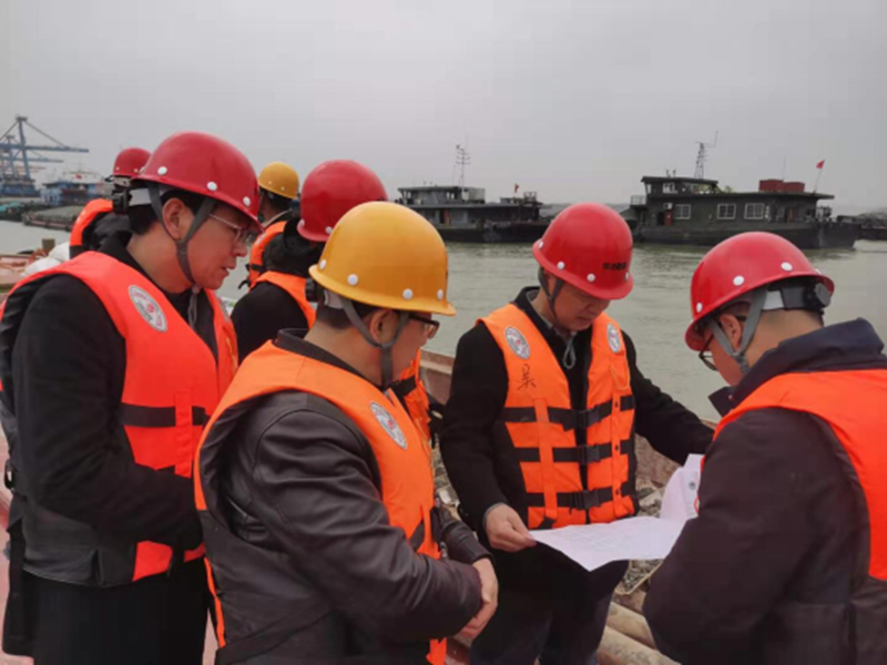 3月16日,局安工处处长钱玉怀率检查组一行赴物探队芜湖朱家桥码头一期工程勘察项目水上勘探作业现场开展安全检查。