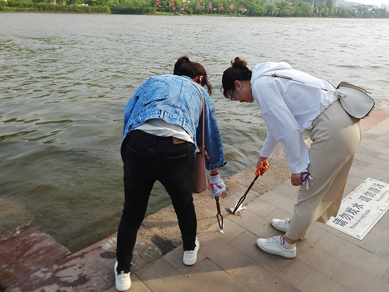 活动中,党员、志愿者们戴上手套、拿着钳子、垃圾袋等工具,一路沿着河道,从草丛中、花坛内、沿岸边,捡拾别人丢弃的塑料袋、饮料瓶、烟头等生活垃圾。大家专心致志,干劲十足,把各种垃圾清理出河道沿岸,让新安江环境更加美丽清新。