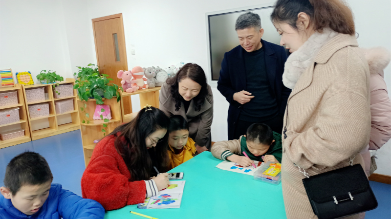 志愿者们在福利院工作人员的带领下,参观了儿童康复室、活动室以及阳光手工坊等场所,了解孩子们的生活情况,并与他们进行了亲密的互动交流,一起读课本、玩玩具、画画?;疃詈螅驹刚呙墙淖急傅男履昀裎锛岸称返人透⒆用?。