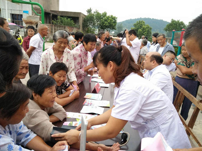 9月11日一大早,枞阳县人民医院10多位医护人员应邀来到汤沟镇民胜村开展“服务百姓健康行动”义诊活动。这是八一二队驻村扶贫以来连续第三年开展“送医药下乡”活动。