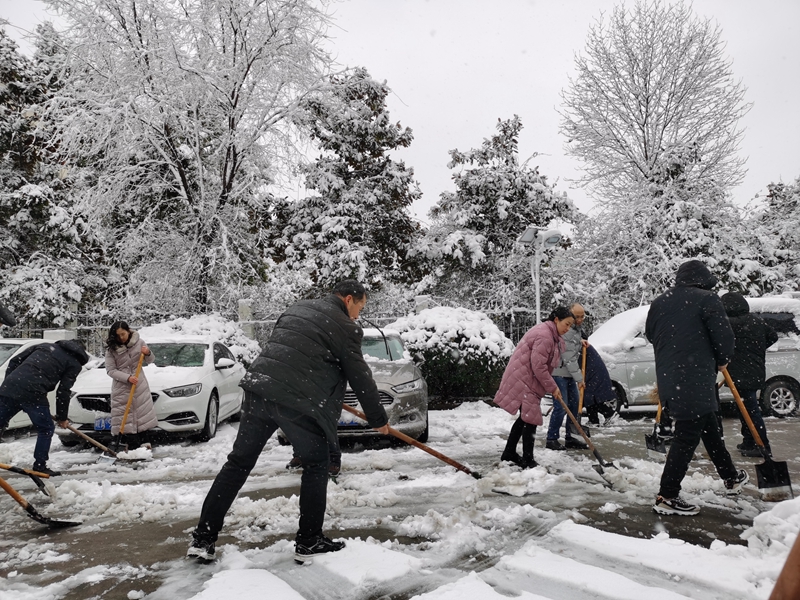 农历新年第一个工作日,合肥地区迎来了降雪。局机关党委组织机关工作人员及驻肥单位干部职工清理局办公大楼周边积雪,为大家营造良好的工作环境,确保雨雪天气出行安全。